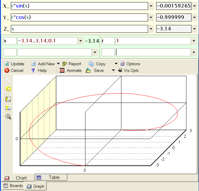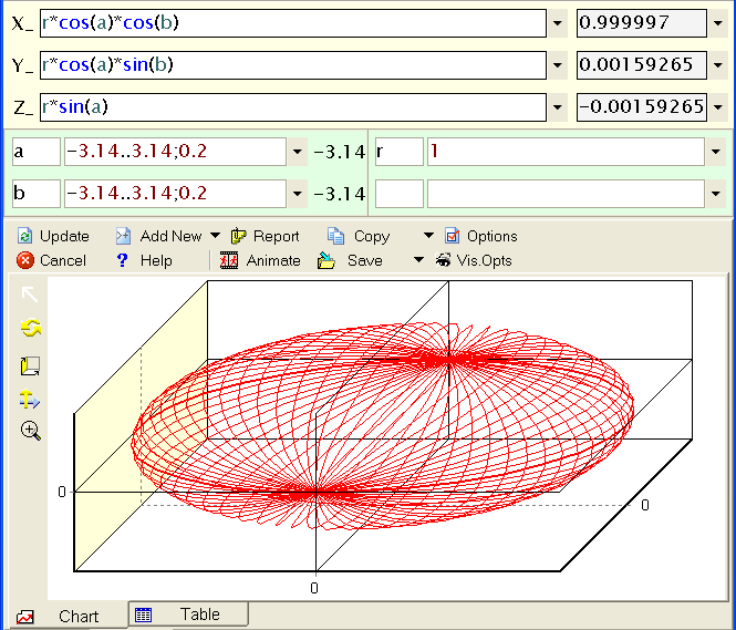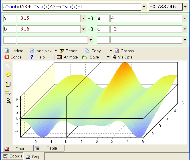 To draw 3D surface is equally simple, just pick an expression with at least two variables, set ranges for these two and click chart button.